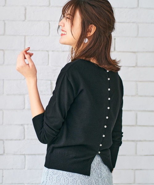 <商品紹介> 後ろ姿が可愛いパールデザインニット。 綺麗目感ある適度なゆるっとさをとくかく追求し、こだわったサイズ感がポイント。 スカートにもパンツにも相性良く、着回しが効く1枚。 素肌に優しく柔らかな着心地です。 ニット スカート マーメード(品番:fch612-0517)とset up推奨アイテムとなります。 よりエレガンスな着こなしが完成しますので、是非セットアップスタイルをお楽しみ下さい。 デザイナーこだわりポイントはココ↓↓ point1 バックにはコロンとした飾りパール 後ろ姿美人♡で抜かりないデザイン point2 裾のスリット 後ろ中心にスリット入り こなれ感をプラス point3 抜け感メイクアップ 綺麗目感ある適度なゆるっと感が抜け感をプラス トレンドのシルエットに point4 メリハリシルエット 袖口と裾はリブ編み 女性らしいラインを生むこだわりポイント <ディテール> ・ボートネック ・後ろ飾りパール釦付き(開閉不可) ・袖丈/長袖 ・後ろ中心スリット入り ・同素材のマーメイドニットスカートとセットアップ可能 <マテリアル> FEERICHELUの上質素材はココが違う! 素肌を柔らかく包み込む上質タッチで贅沢な着心地 ぬめり感 ふんわり&ふっくらした弾力 もっちりとした柔らかさ 保温性にも優れており、秋口~春先までロングシーズン重宝。 密度を詰めたハイゲージニット なめらかな表面感で見た目にも美しく。 極細ストレッチ糸を全面に編み混むことで型崩れしづらく、 より柔らかで膨らみある風合いに。 ご自宅で手洗いOK! ・厚み/やや薄手。(春先、秋、冬対応素材。) ・伸縮性/有り。 ・透け感/淡色は有り。 ・裏地/無し。 <お取り扱い上の御注意> ネット使用 蛍光増白剤使用禁止 単独で洗濯して下さい あて布使用 ベルト、バッグ、アクセサリー等との摩擦や引っ掛けにご注意下さい。洗浄の際に糸が飛び出すことがありますのでネットを使用する等、他の衣類との摩擦や引っ掛けにもご注意下さい。摩擦により毛羽が抜けることがあります。 連続着用はさけ毛玉が発生した場合は早めに取り除いて下さい。 濃色は雨や汗で濡れた状態のまま長時間着用すると他のものに色が移る場合があります。 <色移り・色落ちについてのご注意点> この商品は摩擦(特に湿った状態での摩擦)や汗や雨などでぬれた時は他の衣料や下着に色が移る事がありますので、十分ご注意ください。 また洗濯の際に移染する場合もございますので、他の物とは分けて洗う事をお勧めします。 <お取り扱いご注意点> ●個々により多少異なります。 ●強度な力が加われば縫い目が開く等のトラブルが起きる可能性がございます。ご注意下さい。 ●雨や汗で濡れた時は他の衣類等に(特に白物)色移りする場合がありますので色製品には充分御注意下さい。 ●決して糸は切らないで下さい。穴あき、ほつれの原因になります。 ●染料や加工を加えた際の臭いが製品に付着している場合がございます。 臭いが気になる場合には、風通しの良い日陰の場所に干して頂けましたら幸いです。
