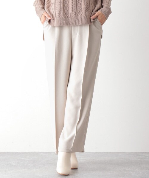 ◆センタープレスが入ったキレイめパンツ今年トレンドのタックパンツ。しなやかな生地が上品な印象を与えてくれます。程よくワイドなシルエットで、美脚効果も抜群。合わせやすい定番カラーはもちろんのこと、優しいくすみカラーはコーディネートの主役にもぴったりです。豊富なサイズ展開で選びやすいのも嬉しい!