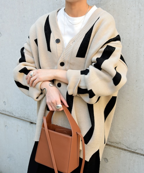 ◆アイテム詳細◆ 【Marient 20A/W】 スティックデザインが目を惹く、ボタンニットカーディガン。 拘りぬいた柄の配色は、色数が多すぎないためコーディネートしやすく、 落ち着いた雰囲気のある仕上がりとなっています。 ユニセックスデザインなので女性がビッグシルエットで着用するのもオススメです。 ーーーーーーーーーーーーーーーーーー 【COLOR】ベージュ・ブラック 【SIZE】サイズ FREE 平置き(㎝) 着丈75 裄丈85 身幅64 裾幅60 【素材】アクリル90% 毛10%