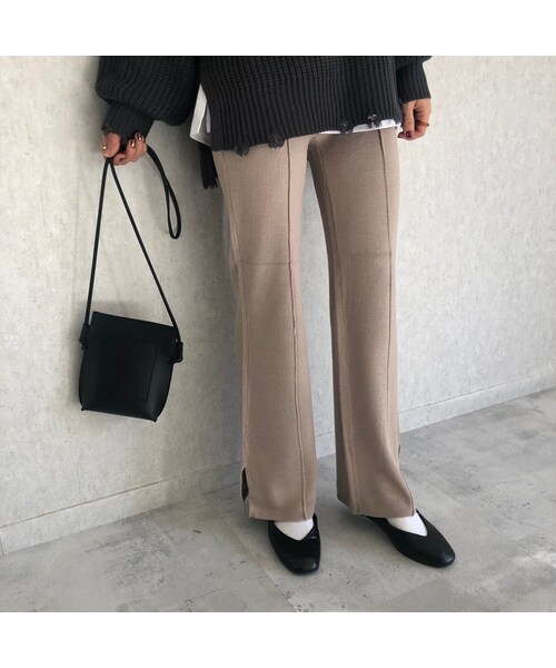 レイヤードスタイルに欠かせないフレアニットパンツです。 フレアパンツ初心者でも取り入れやすいゆるやかなフレアシルエット♪ サイドスリットが足元に軽さをプラスし、女性らしいシルエットを演出してくれます♡ なめらかな肌触りが良いミラノリブで、ウエストはゴム使用なのでストレスフリーな着心地も魅力のひとつです! いつものボトムスをニットパンツに変えるだけで、トレンド感溢れるコーディネートが完成するアイテムです★ ※モデル身長:161㎝ ◾️クリックポストにて代引きをお選び頂いた方は、390円プラスさせていただき、宅配便代引きにて発送させていただきますのでご了承下さい。 ◾️カラー グレージュ・モカ・ブラック ◾️サイズ 着丈:97cm ウエスト:60cm ヒップ:82cm 裾幅:46cm 股下:71cm ※多少の誤差は予めご了承ください。 ◾️素材 アクリル 100%