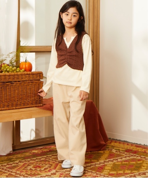 -&yam/アンドヤム- ハイウエストが可愛いワイドパンツ ベーシックアイテムとして重宝するコットン素材のワイド・イージーパンツ 定番のパンツもゆったりとしたワイドシルエットラインとハイウエストデザインが特徴でアップデート ウエスト回りはゴム仕様なので、ストレスフリーな履き心地も嬉しいポイントです ロングシーズンご着用頂けるアイテムです カジュアルから大人キレイ目スタイルまで幅広いコーデにおすすめ◎ 冬シーズンは、スウェットやざっくりニット・ざっくりカーデ・ボリュームマフラーとのコーデが相性抜群です 《&yam》 brand identity “BETTER DAYS” &yamはオシャレが大好きな親子の為に、素材・デザインディティールにこだわり、大人服と同感度・同品質を目指します。 デイリーに着られる機能・着心地・スタイリングのしやすさ・全身揃えられる価格で、&yamユーザーの日々の暮らしがより良くなるお手伝いをしたいと願っています。 【INFORMATION 】 ▼お気に入り登録▼『♡』マークを押してお気に入り登録をすると、割引クーポンの発行/セール開催の通知/タイムセール通知/人気商品の再入荷通知など、eversince/&yam取扱いブランドのお得な情報を受け取ることができます。 気になった商品はどんどん『♡』マークを押して、登録してください ※モニター・環境等により実際の商品と多少色味が異なって表示される場合がございます。予めご了承をお願いいたします※