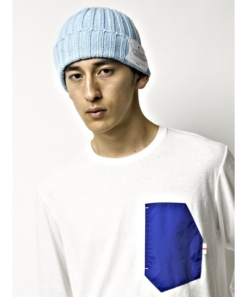 ■ニットキャップです。リブ編みの折り返しタイプになります。ビビットなカラー展開でスタイルのアクセントに最適です。折り返し部分にネームが施されます。
