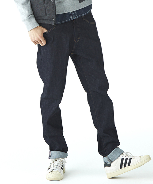 ベーシックなサイズ感・シルエットで仕上げたデニムパンツ。スッキリしながらも細過ぎない定番のシルエットで、太腿から裾にかけてテーパードをきかせたデザインはレッグラインを綺麗に見せ、リラックスして快適に着用頂けます。程よい緩みをもちつつ、存在感のあるシルエットが、シンプルながらも飽きがこないので非常に重宝頂けます。定番のアイテムはアイテム問わず様々な着こなしに対応します。またトレンドにも左右されづらく、年をまたいで長くご愛用頂けるひと品です。 店舗にてお問い合わせの際は、下記の品名・品番をお申し付け下さい。品名:レギュラーデニム 品番:B14AU-1501-007 model:H183 着用サイズ:LARGE modelH180 B83 W76 H88 着用サイズ:MEDIUM WEGOの特集ページはコチラ