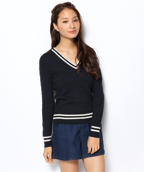 【Ciaopanic】チルデンVネック デザイン、サイジングが可愛いチルデンVニットになります。 インナーに使ってもお洒落な1枚です☆★ model H169 B82 W58 H84 着用サイズ:FREE