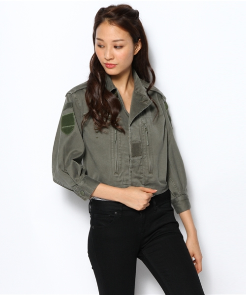 【Ciaopanic】F2ショートジャケット リメイクされたデザインが可愛いF2のショートミリタリーJKTです。 軽い羽織りとしてもってこいのアイテムになります☆★ model H169 B82 W58 H84 着用サイズ:FREE