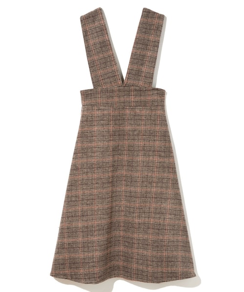落ち着いた色合いのグレンチェックボディが、クラシカルなムードを漂わせるジャンスカ。 女の子らしいシルエットに導くフレアラインがお気に入り。 スタイルアップを狙えるハイウエストなのも嬉しいポイント。 ★裁断の関係で、柄の出方が写真と多少異なる場合があります。 ★バックウエストゴム入りです。 ★ポケット付きです。 ★肩紐はボタンの位置によって長さ調節可能です。