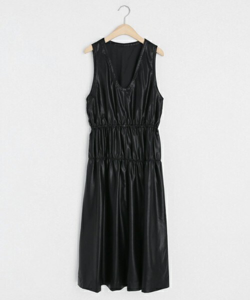 つやのあるレザー調素材のワンピース! ウエストを2段のゴムで切り替えたゆとりのあるデザイン◎ ※WEARに記載してある金額と、DHOLIC通販サイトに記載してある金額にシステム都合上、稀に誤差が生じます。正しい金額はDHOLIC通販サイトに記載された金額です。