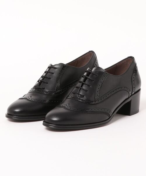 Pertini 20FW / スペインのシューズ名家 / 遡ること60年余り、1950年代にシューズメーカーを営んでいた祖父母の影響を受け、1982年にスペインの南東部に位置するアルマンサにてPertiniを創業。 クラシックパターンをベースにモダンさを加えたコレクション。古くからあるモノだからこそ、「革新的で現代的そして実用性を兼ね備えたデザイン」をモットーにバラエティに富んだシューズを生み出している。 / クラフトマンシップ / こだわりの靴作りはマッケイ製法やグッドイヤーをはじめ、最先端技術も取り入れ熟練の職人が作り上げている。伝統的なクラフトマンシップがあるからこそ実現する靴作りはスペインの伝統を根底にもつ現代シューズである。 ・メンズライクなデザインのウィングチップをフェミニンに仕上げたシューズ。どうしても重たくなりがちなデザインだがメダリオンの穴飾りの付ける位置を工夫し、強弱をつけることによりリズムある顔に仕上がりました。しっかりヒール高があるのも嬉しいところ。