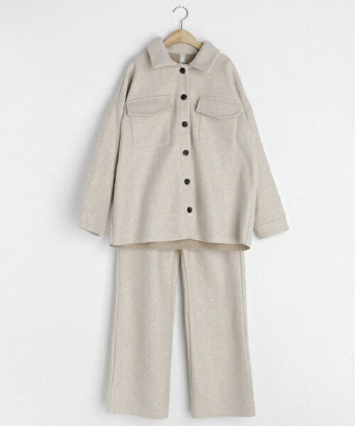 トレンディな形のジャケットとパンツのセットアイテム! ジャケットはシャツスタイルでボタン合わせ。 ボトムはウエストゴムでさらに調節が可能なストリングデザインのワイドフォルム。 ※WEARに記載してある金額と、DHOLIC通販サイトに記載してある金額にシステム都合上、稀に誤差が生じます。正しい金額はDHOLIC通販サイトに記載された金額です。