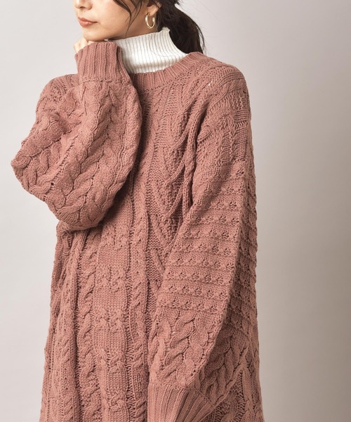 大人可愛いケーブル編みのビッグニット ポコポコとしたケーブル編みが可愛いニットプルオーバー。 編地が切り替えてあるので表情豊かに装いを彩ります。 ゆったり着られるオーバーサイズで華奢見えも。 お腹やお尻周りを隠してくれるから安心してご着用いただけます。 暖かで優しい雰囲気が秋冬のコーデにぴったりな1枚♪ 裏地なし 伸縮性なし 薄手 編み加減や染めの具合でデザインやサイズ等異なる場合もございます 洗濯:手洗い可