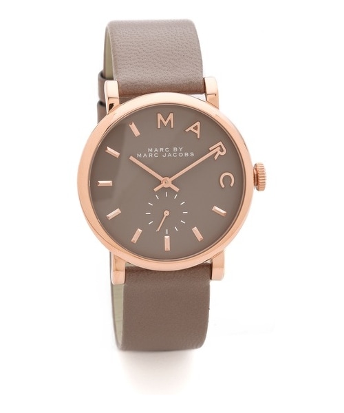 Slim markers detail the round dial on this leather Marc by Marc Jacobs watch, designed with a single subdial that counts seconds. Adjustable length and buckle closure. Water resistant to 50 meters. 2-year manufacturer warranty. Imported, China. MEASUREMENTS Dial: 1.25in / 3cm Band: 0.75in / 4.5cm Length: 6-8in / 15-20cm