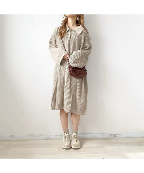 レトロデザインのニットワンピース♡ 襟付きでこれ一枚でおしゃれなコーデに♪ これからの季節にぴったりのアイテムです◎ model:153cm ■カラー:グレー ■サイズ: 【F】着丈約100cm 胸囲約60-80cm 袖丈約48cm 肩幅約63cm ※数センチの誤差が生じる場合あり ※こちらの商品は決済から2-4週間前後でのお届けとなります。 ※在庫状況によりキャンセルさせていただく場合がございます。 ※仕入れ工場を変えることがあるため、記載サイズと若干異なる場合がございます。 ※商品の色味は、モニター環境やコンピュータの仕様により実物と異なる場合がございます。
