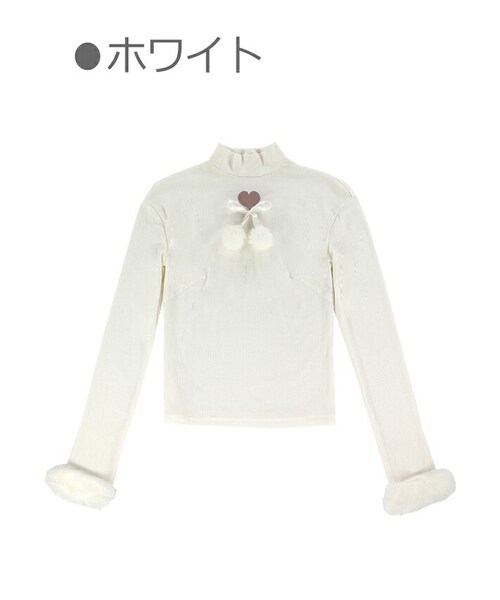 肌触りが良くストレッチが効いた見せインナー ベーシックシルエットなのに細見え効果MAX 全体リブ仕様でしなやかにのびのびと着れる 胸元にはハート型の刺しゅう&ボンボン付きリボン ボトムスINしやすい薄手でフィット感ある素材 胸元のボンボンと袖ファーは取外しOK その日のコーデ、気分によってアレンジできちゃう カラーは「ホワイト」1色のみの展開