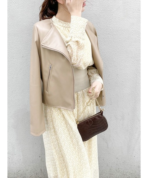 合わせやすいライダースは1枚あると春大活躍★ シンプルなライダースは春の定番アウター!合わせやすいのでこの春とっても使える予感!! しぼ感が少ない、なめらかな風合いを大切にしました。細身だけど、圧迫させない計算させたシルエットに。 襟の強い作りがなく、大人っぽい襟元を表現しインナーのネックデザインにも 幅広く対応出来るように作っています。 【 お買いものにおすすめの便利機能! 】 ★商品のお気に入り登録 完売カラーの再入荷時や、ラスト1点の時、セール開始時にお知らせします。 ★ブランドのお気に入り登録 新商品や再入荷、セール情報など、いち早くブランドのお得な情報を受け取ることができます。 ぜひご活用ください! 【スタイリング】 柄合いのワンピースで、軽い素材に対して重みを乗せクラシカルな装いに。 パンツスタイルでスパイシーな着こなしもおススメです。 とてもキレイ目なデザインなので、カジュアルテイストのアイテムも清潔感高まるコーデになります。