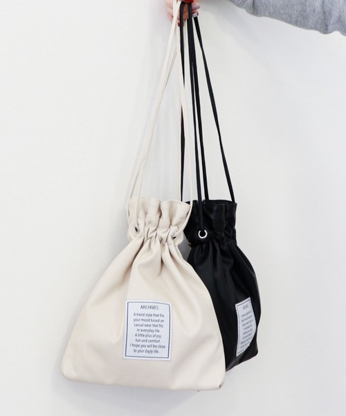 ちょっとそこまでにもお出かけにも♪ レザー調の巾着バッグはラフになりすぎないので、幅広いシーンで活躍できるアイテム。 見た目よりも容量が深く、裏に大き目なポケットが2つついているので、収納力も◎ 手持ちでも肩掛けにもできる長さの紐は、結べば巾着ポーチにも。 素材は適度な薄さで柔らかいので、オールシーズン使って頂けます。 照明や天気により実際の色味と異なって見える場合がございます。ご了承くださいませ。 … information … 欲しいitemをお気に入り登録(♡マークをclick) ・お買いのがし対策…完売itemの再入荷やラスト1点の情報をお知らせ ・欲しいitemをお得にget…price downになったらいち早くお知らせ ・スムーズ検索…ZOZOのお気に入りアイテムページで簡単checkできるから、再検索不要♪
