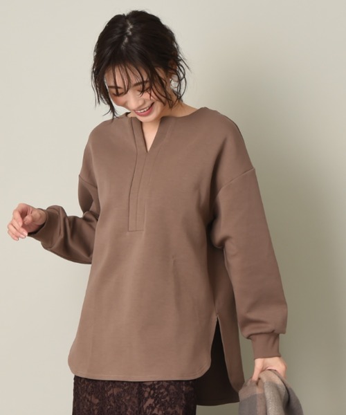 アンチピリング加工されたダンボールニット素材を使用 顔回りすっきり! キーネックチュニック 本体は肌さわりの良いダンボールニットを使用。襟元のキーネック開きでカジュアルなアイテムながら女性らしく見えるお勧めなアイテム。さらにラウンドヘムで優しい印象もプラス◎袖口はリブ仕様でクシュっとたくし上げると手元を綺麗に魅せてくれるのもポイントです。本格的に寒くなれば、インにタートルを合わせたスタイリングもお勧めです。 ■アンチピリング加工 この製品の本体表面には毛玉になりにくい糸を使用しています。 ■取り扱い ご自宅でイージーケア(手洗い)ができます。 【ダンボールニット素材とは】 表面糸と裏面糸を中糸でつなげて作る生地のこと。ダンボールの構造によく似ているためその名前が付きました。中糸の間に空気を溜めることが出来るため保温性に優れた素材です。 ☆☆☆☆☆☆☆☆☆☆☆☆☆☆☆☆☆☆☆☆☆☆ *撮影時の照明などの関係により、実際の色味が違って見える場合があります。スマートフォンやパソコンにより、製品と画像の色味が異なる場合もあります。また、表示のサイズ感と商品は若干異なる場合もありますので、予めご了承ください。 INTERPLANET/actuel(インタープラネット/アクチュエル) ・concept いつだって私らしく、私自身のスタイルが決まる。。。時代や年齢に媚びない『らしさ』を纏って生きる女性へ。旬なベーシックと抜け感のあるカジュアルをMIX。そんな大人カジュアルコーデを提案します。 ・お気に入りの登録について ショップ、ブランドのお気に入り登録でクーポンやタイムセールの通知などお得な情報を受け取ることができます♪また、気になるアイテムのお気に入り登録でセールや再入荷の通知など受け取ることができます。