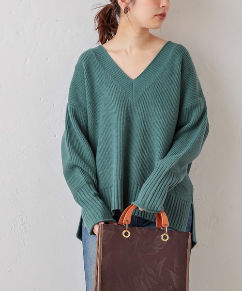 【2020AW natural couture】 大人カジュアルなニットアイテム◎ 深V畦袖口カールニット 深めのVネックがレイヤードの幅が広がる、着回し抜群のニットプルオーバー。 シンプルなクルーネックTや、白シャツ、ハイネックインナーなど、合わせるインナーによって 様々なスタイリングで楽しめます。 シンプルながらも、存在感のある畦編みのニット地と、袖口のディテールにもこだわった、 他と差がつく1品です。 ゆとりのあるシルエットと、余裕を持たせた丈感が、1ランク上の大人カジュアルコーデに仕上げてくれる ニットです。 カラーは、アイボリー、ベージュ、ブルー、グリーン、カーキの豊富な全5色でご用意しました。 色違いで持っていても活躍すること間違いなしの1着を、普段のワードローブに加えてみてはいかがでしょうか。 ========================= 透け感:なし 裏地:なし 伸縮性:あり 光沢感:なし 生地感 :軽くて柔らかい =========================