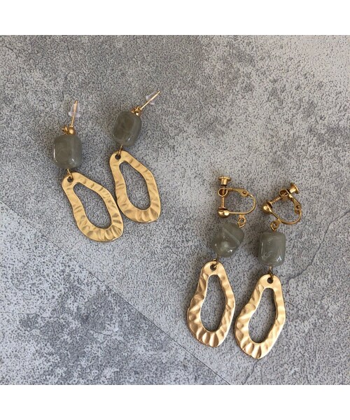 ストーンと光沢のあるパーツを組み合わせた、ユニークな表情が魅力! ボリュームのあるシルエットで、華やかな印象をプラスしてくれます。 ピアスとイヤリングの2種類をご用意致しました★ デイリースタイルにはもちろん、パーティーなどのドレスアップをしたコーディネートなどにも最適です。 ◾️クリックポストにて代引きをお選び頂いた方は、390円プラスさせていただき、宅配便代引きにて発送させていただきますのでご了承下さい。 ◾️カラー ゴールド ◾️サイズ 縦:約5.4cm 横:約1.9cm 重さ:約4g ※多少の誤差は予めご了承ください。 ◾️素材 合金 樹脂
