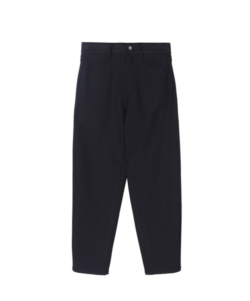 ポリエステルマイクロリンクルツイルの定番パンツ。お手入れが簡単で、しわになりにくく、シンプルなテーパード型なのでコーディネートしやすく、幅広い層に人気。