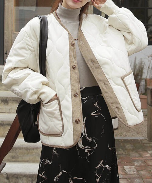 コーデュロイとウェーブキルティングのコントラストデザインです。ノーカラーのVネックでサイドにはポケット付き。袖口はリブでフィットします。 ※WEARに記載してある金額と、DHOLIC通販サイトに記載してある金額にシステム都合上、稀に誤差が生じます。正しい金額はDHOLIC通販サイトに記載された金額です。