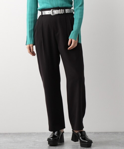 ハイウエストな腰回りにツータックのゆるっとしたテーパードシルエットのパンツ。