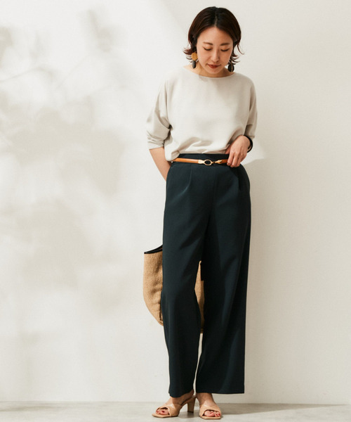 軽さが売りのポリエステルのダブルクロス生地使用。 ストレッチが効いており、ストレスフリーでらくちんに着て頂けます。。 シンプルな着回しのきくワイドストレート型のタックパンツなので、トップスで悩むこともなし! A0115FB211とのセットアップもおススメです。 ※ご自宅での手洗い可能(詳しくは洗濯表記をご確認くださいませ)