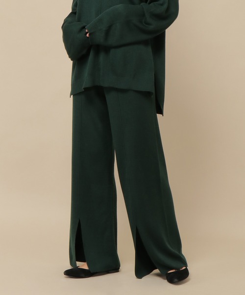 毛玉になりにくい素材をつかったニットパンツです。 ニットのため、履き心地も抜群で、おうち時間にもピッタリ。 裾のスリットが抜け感アップでこなれた雰囲気に仕上がります。 ■セットアップ可能アイテム スーパーアンチピリングニットプルオーバー(品番:51120011) [洗濯方法]洗濯の際はネットを使用してください