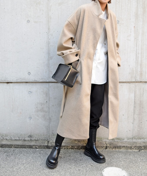 ◆アイテム詳細◆ なめらかで触り心地が良いスペリオルウール生地は、艶のあるふっくらとした生地感が特徴で、バックスリット入りで裾にかけてAラインに広がるロング丈は羽織るだけで雰囲気のある着こなしが完成します。 肩から袖にかけてゆったりした袖付けで、中に厚めの トップスを仕込んでも綺麗に着ていただけます。 サッシュベルトが付いておりウエストリボンにしたり後ろでたらしたりとアレンジが可能です。 ーーーーーーーーーーーーーーーーーー 【COLOR】ベージュ・グレー・ブラック 【SIZE】サイズ FREE 平置き(㎝) 着丈120 肩幅67 身幅62 袖丈52 袖口17 裾幅80 【素材】本体 毛60% ポリエステル40% 裏地 ポリエステル100%