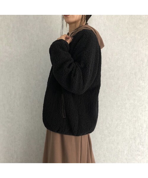 トレンドライクなデザインがキュート♡軽い着心地のボアジャケットです。 もこもこのボアでしっかりあったかかく、程よい丈感でボトムスを選ばずコーデを楽しむことができるアイテム♪ ノーカラータイプなので、パーカーとのレイヤーコーデやワンピース等のフェミニンなアイテムと合わせても◎! メインアウターとして着るのはもちろん、冬にはインナーとして使う事できるおススメアイテムです★ ※モデル身長:161㎝ ◾️カラー モカ・ブラック ◾️サイズ 1(M):着丈63cm 身幅58cm 裄丈78cm 裾幅48cm ※多少の誤差は予めご了承ください。 ◾️素材 本体:ポリエステル100% 裏地:ポリエステル100% ボア:ポリエステル100%