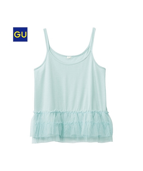 裾部分をチュールで切り替えたタンクトップ。短丈トップスとあわせてレイヤードスタイルが楽しめます。 ※店舗とは取り扱い及び販売日が異なることがあります。
