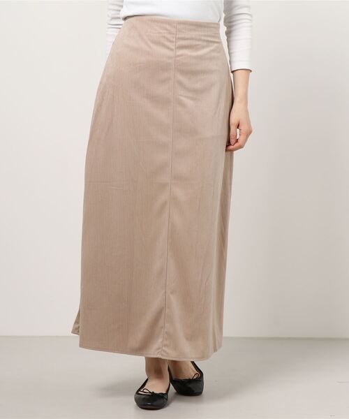 季節感漂うベロアコールのスカートが仲間入り見た目にも暖かくほっこりするルックスが人気の理由。肌触りの良いベロア生地を採用。シンプルで使いやすいデザインなので、カジュアルの中に上品な大人の女性らしさを演出できます。足首が見えるロング丈で美脚効果も期待できるのも嬉しいポイント♪ボリュームのあるニットで抜け感たっぷりなスタイルやコンパクトなサイズ感のトップスをタックインするレディルックなスタリングがオススメ。