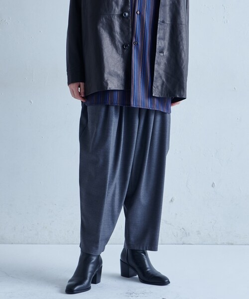 Lui's(ルイス)オリジナルより、高級鬼タックpt 20awの入荷です。【素材】T/R/Wの72番双糸を使用した上品なツヤ感と適度なハリ感が特徴の洗えるウール混ストレッチ素材を使用。ウール特有のしなやかさもあり、肌触りも非常に良い素材です。【デザイン】Lui'sでも定番になりつつある、'鬼タック'と呼ばれる、タック本数を多くした、ユニークなルックスが特徴的なパンツです。タックと共に、ウエストはギャザー仕様になり、脱ぎ穿きも非常にし易い1本です。ワタリにはしっかりボリュームを持たせ、太くありながらも、膝下から、緩やかに掛かるテーパードシルエットになり、見た目以上に穿きやすい1本です!【コーディネート】モード感が非常に強いく、ウエストデザインが特徴的なので、シャツやオーバーサイズのカットソーをタックインしたコーディネートや、シャツジャケット等で合わせて、軽快なコーディネートもお楽しみいただけます。レザーシューズとも相性が良く、今期新たに登場する、Lui'sオリジナルのヒールブーツとのコーディネートもオススメです!【ブランド】Lui's(ルイス)モテる男のワードローブをテーマにモード&ストリートのMIXコーディネートを提案。着心地、カッティング、素材感を重視した商品を国内外問わず編集し発信していく。▼商品のお気に入り登録完売カラーの再入荷通知やセール情報を受け取ることができます。▼PALCLOSETアプリにてブランドフォロー新商品や再入荷等、いち早くブランドのお得な情報を受け取ることができます。