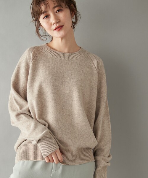 天竺編みでリラックスして着まわせるニット程よくゆとりのあるシルエットにソフトな着心地が魅力のニットは、身頃や袖にゆとりを持たせることで、女性らしい優しい印象に。ボトムスを選ばず幅広いアイテムと合わせて頂ける一枚になっています。ベーシックカラーに加え、上品で鮮やかなミントは今季の一押しカラーです。・テイストを問わず幅広いスタイリングで活躍間違いなし・ゆとりのあるシルエットにシンプルな無地のデザイン・ボトムスを選ばないミドル丈・軽く柔らかで着心地が良い洗濯方法:ドライクリーニング透け感:なし裏地:なし伸縮性:あり生地の厚さ:普通モデル情報:H165 B80 W60 H86 着用サイズ:F 詳細着用モデル:H159cm 着用サイズ:F#今買いアイテム#心地良い服#リラックスムード#お出かけコーデ#デイリーユース#ミドル丈#長袖#無地#ウール#クルーネック--------------------------------------------------------------------------------【注意点】※画像の商品は光の照射や角度、お使いのモニター環境により、 実物と色味が異なる場合がございます。あらかじめご了承下さいませ。--------------------------------------------------------------------------------【『♡』をクリックでお気に入り登録】・ラスト1点や再入荷の通知が届きます。 -------------------------------------------------------------------------------- 【スタッフ着用コメント】《MEGUMI》身長:159cm/細身/普段サイズ:S/着用サイズ:Fサイズ感:身体のラインを拾わないゆとりのあるサイズ感です。ヒップの隠れる着丈でした。素材感:柔らかで着心地が良く、暖かみがありカジュアル過ぎずテイストを問わなさそうです。着心地:リラックス感があり楽な着心地でした。《kiri》身長:148cm/普通/普段サイズ:S/着用サイズ:Fサイズ感:ゆったりシルエットです。ゆとりがあるのでシャツやキャミワンピースなどもレイヤード出来そうです。素材感:程よい厚みでしっかりとした生地感です。着心地:ウール混ですが、チクチク感なく着用出来ました。