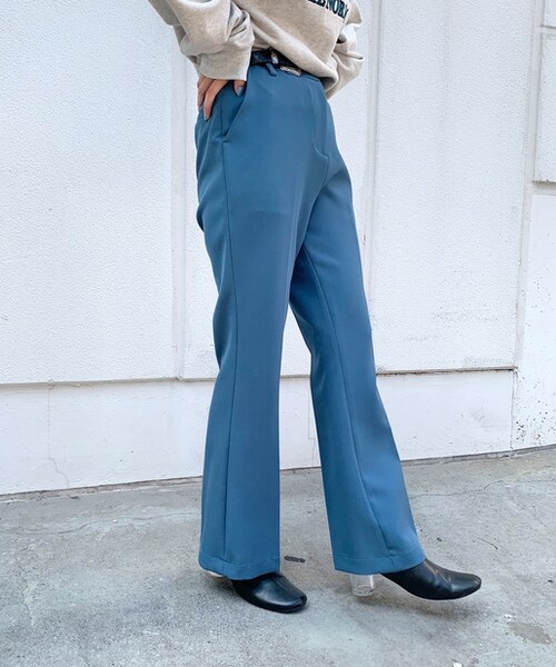 【2020SS-AW / REGULAR ITEM】美脚効果◎カラーフレアスラックスパンツ ・フレアのシルエットに加え、センタープレス入りで脚長効果バツグン。・コシのある素材で立体的なキレイなラインが保てます。・コンパクトなトップスにはもちろん、ビッグトップスにもバッチリ合い、Tシャツやスウェット等とも相性バツグン、ストリートスタイルにもハマります。・季節を問わない素材感でオールシーズン楽しめるアイテムで重宝すること間違いなし。・ウエストにゴムが入った類似品番(WWZ1001102A0001)は、カラー展開が異なるのでそちらもぜひチェックしてください!※後ろポケットのデザインはポケット仕様ではありません。(デザインの仕様としてポケット風のデザインになっています。)*気になるアイテムは《お気に入り登録》がオススメ!入荷情報やクーポン情報が通知されるようになります。
