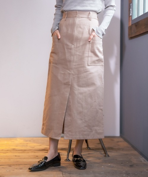 ハリのある素材感がとても大人っぽい印象のタイトスカート。 腰回りのラインがすっきりしているので、スタイルアップ間違いなしのシルエットです。 アウトポケットがアクセントになってくれる、デザイン性も高いアイテムなので シンプルなニットやブラウスにも合わせやすいのが嬉しいポイント! キレイめコーデからカジュアルなデイリーコーデまで、一枚で幅広いテイストを楽しんでいただけます。 【INFORMATION】 ■商品のお気に入り登録 完売していても再入荷時に再入荷通知を受け取ることができますので、是非ご登録ください! ■ブランドのお気に入り登録 新商品や再入荷などの情報を受け取ることができますので、是非ご登録ください! ※撮影環境により、光の当たり具合で色味が違って見える場合があります。あらかじめご了承ください。