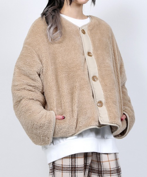 大人気のボアアウターが新登場★ ・リバーシブルで着用できる2way仕様♪・ノーカラーで首回りがすっきり見え◎・海外セレクトアイテムです☆ノーカラー / ボアアウター / 韓国ファッション / カジュアル / プレゼント【商品画像について】※画像はサンプルです。実際の商品と仕様、加工、サイズ、カラーが若干異なる場合がございます。また、撮影場所や照明の照射・角度、お使いのモニター環境によりお色味が異なる場合がございます。予めご了承ください。