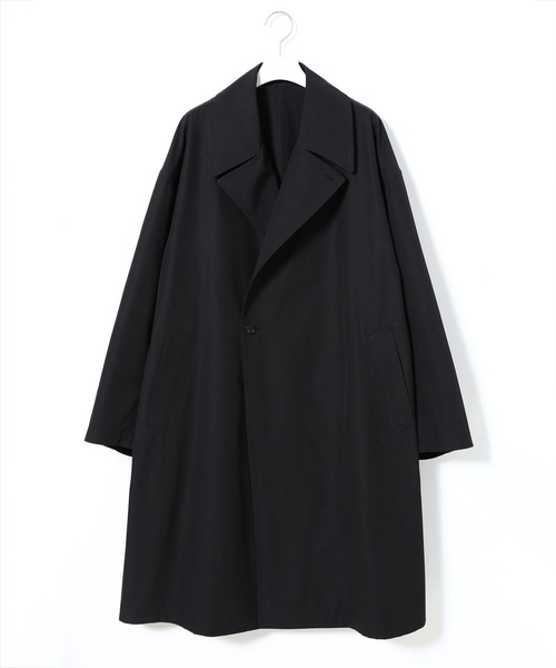 【Material】 「撥水性、ハイブリッド素材」 コットンの様な風合いとルックスが特徴で、ポリエステルのイージーケア性とコットンの天然素材特有の色味と質感のハイブリッド素材。ドライにカリッと仕上げた、ワッシャー感のある手触りで、程良く肉厚感のある素材となっています。また、生地には撥水性があり、多少の雨もしのげる仕様となっています。 【Design】 「リラックスシルエット。1着あれば重宝すること間違いなし。」 外出機会が減って、着用頻度が少なくなってきて、重すぎたり手入れが面倒なアウターはもう要らないけど、やっぱりコート着たい方にピッタリな逸品です。 撥水機能あるので多少の雨なら防げて、ワイドシルエットなのでオーバーコートとしても抜群の使い心地です。 シルエットはトレンドのゆったり感とドロップショルダーでリラックスした着こなしできるセミダブルコート。 長めの着丈設定なので、これ1着でコーディネート決まります。 【Review】 たっぷりした着丈なので、バサッとオーバーサイズで着用するのがおススメです。 落ち感が非常に綺麗なので、オーバーサイズでもだらしなく見えず着用しやすいのが嬉しいポイント。 撥水性もあるので、急な雨だったりする日にも活躍すること間違いなしです。 【推奨サイズ】 サイズM:身長~175cm サイズL:身長176cm~ ※標準体型を基にした目安になります。