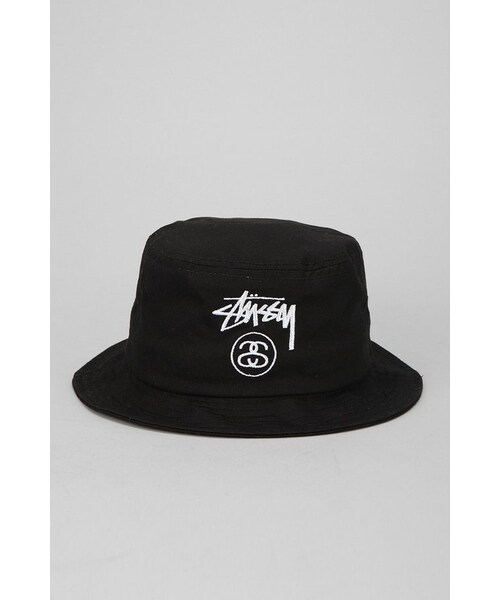 Updated bucket hat from Stussy. Woven cotton construction topped with embroidered logo detailing at the front. Complete with stitched detailing at the brim and finished with vent holes at the sides CONTENT + CARE Cotton Spot clean Imported