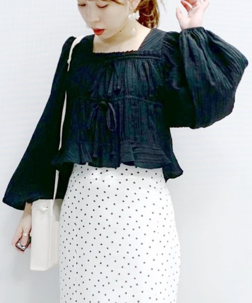 ================= 顔面最強ブラウスって何!? 着映えするディテールや素材感などが 顔を華やかに、かわいく見せてくれると スタッフの間で話題に…!! ================= 出会いの季節にピッタリの 好印象ブラウス! リモートでも、”着映える” ラインナップを取り揃えました♪ 【デザイン】 胸元のダブルリボンがポイントになったフェミニンなデザインブラウス。 贅沢な胸元プリーツやペプラムフレアの裾デザインが華やかなアイテムです! 袖口はゴムになっていて、たっぷりとしたボリューム感が魅力♪ デコルテをキレイに見せてくれるスクエアネックも大人見えポイントです! 1枚にこだわりがたくさん詰まったおすすめのアイテムです。 【素材】 ごわつきにくく、程よい張り感のある素材 【スタイリング】 ガーリー派はミニスカやロングスカート合わせで王道スタイル♪ カジュアル派はデニムやパンツ合わせで大人カジュアルに落とし込むのがオススメ! ※屋外の光や照明の当たり具合で、実際の商品と画像の色味に違いが発生する場合がございます。