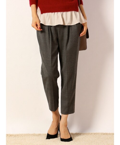 ゆるめのテーパードパンツ。今年らしいマニッシュさをプラスしてくれる1本です。さりげないストライプがコーディネートの幅を広げてくれます。中国製model:H166・B80・W59・H86着用サイズ:2