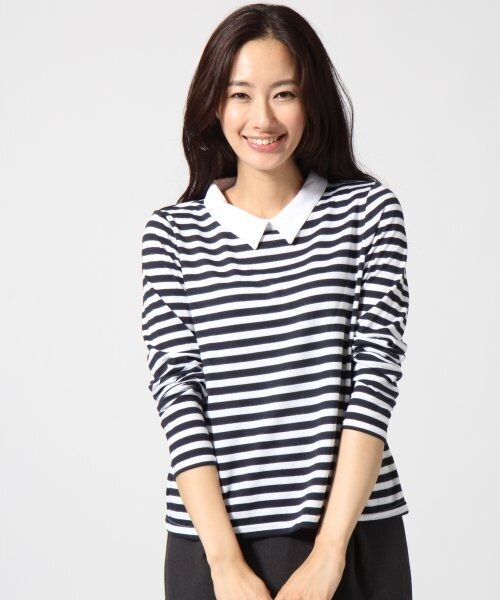 ★重ね着風のデザインカット★シャツとボーダーカットソーを重ね着したようなデザインが特徴。襟を布帛ではなくカット素材にしているのでカッチリしすぎずカジュアルにも着まわしやすくなっています。アクリル混の素材を使用しているので薄くても温かく着心地の良い一枚です。店舗へのお問い合わせは下記の商品名と品番をお伝えください。商品名:カットエリボーダーPO/LS品番:549472