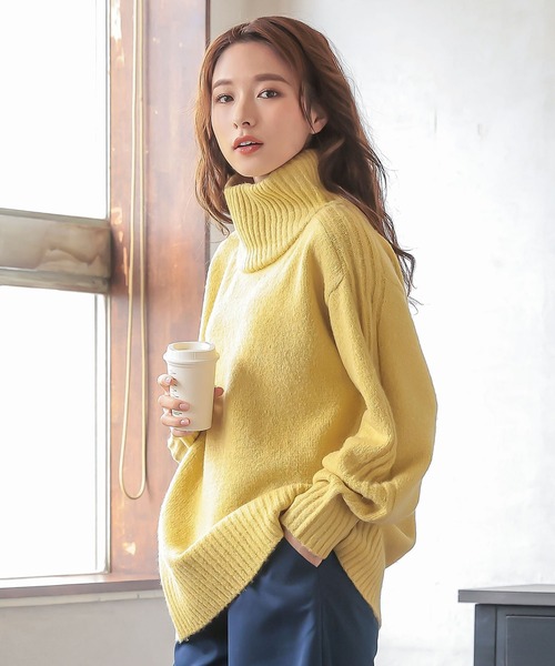 ボリュームネックが印象的なストレスフリーな長袖セーター。ゆるめのサイジングが、快適な着心地と今年らしい着こなしを叶えます。ボリュームネックも、ゆったりしてるので、締め付け感が苦手な方にもオススメ。シンプルながら、サイドのリブ編みがコーディネートのアクセントに。【素材・サイズ感】もちもちとした肌あたりのいいニット素材を使用。ウォーム感もあり、風合いも◎程よい肉厚感で、暖かく着て頂けます。全体的にゆったりしたサイズ感で、ストレスフリーな着心地。ヒップラインも隠れる丈感で、体型カバーにも繋がります。