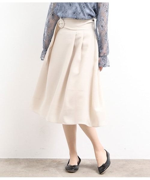 風合い豊かなリネン調素材を使用したフレアスカート。丸バックルの共布ベルトがセットになった、クラシカルなデザイン。フロントタックとバックのギャザーでボリュームを出し、華やか見えする立体感のあるフォルムに仕上げました。春らしいカラーラインナップで、季節の先取りを楽しめます。