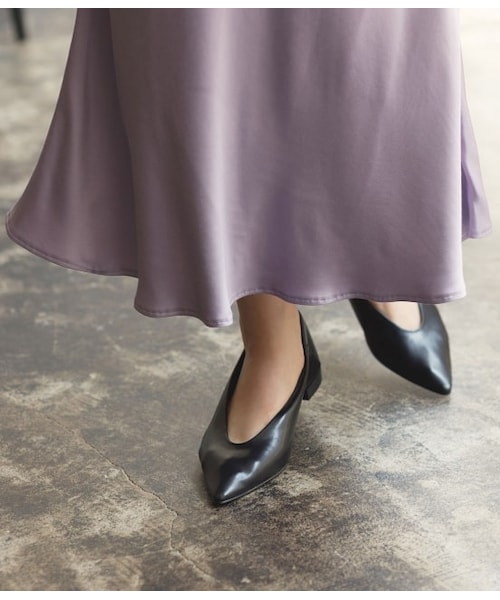 柔らかなキッド調のエコレザーを使用し、肌に馴染むような履き心地のフラットシューズ。硬い芯が入っていない柔らかな作りなので、ポインテッドトゥが苦手な方にもおすすめです。甲をすっきりとキレイに見せてくれる狭めな履き口のカッティングがポイントで、かかとを踏んでミュールのようにも履いていただける2WAY仕様なのも嬉しいポイント。程よくドレスライクなフラットシューズは、シーンを問わず履いていただける一足です。※画像の商品はサンプルです。お届けする商品に仕様・サイズ等の変更が生じる場合がございます