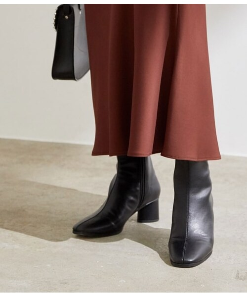 ストレッチ素材のソフトなエコレザーを使用しているので、タイトなシルエットでもストレスフリーな履き心地を叶えたブーツ。厚みのある裏地を使用し、ストレッチブーツにはなかなかないしっかりとしたホールド感も実現しています。どんなスタイリングにも相性の良いすっきりとしたシルエットで、いつものスタイリングを今っぽく仕上げてくれます。安定感のあるシルエットのデザインヒールがスタイリッシュに足元を彩ります。パンツをかぶせてもすっきりと履いていただけるので、どんなボトムとも好相性。デイリーに使いやすいブーツはマスト