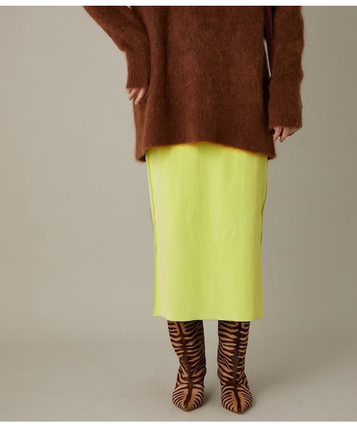 【Material】中肉のストレッチコーディロイ素材です。ニュアンスカラーのラベンダーと発色のきれいなライムグリーンの2色でライムグリーンは別注色です。【Design】コーディネートし易く、ブラウスやニットとバランスよく合わせやすいシンプルなコーデュロイスカートです。サイドとセンターバックのメロー始末がさり気ないポイントになっています。ウエストはゴムでイージーな履き心地です。【Styling point】ボリューミーなニットやチュニック丈のトップスなどに。ショートブー