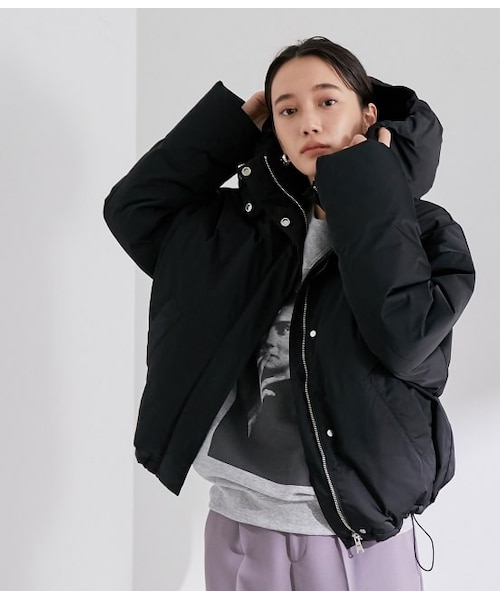 【Material】表地は程よく光沢のある中肉でハリのあるモードな素材。高密度のため型崩れしづらく、自然な撥水性があります。中身はALLIED社のダウンを使用しています。トレーサビリティのあるダウンのみを使用しており、サスティナブルな方法で高品質かつ安全なダウンです。ダウンの嵩高性をあらわすフィルパワーの数値が高く、軽いのに驚きの暖かさです。【Design】 着ると今年らしいAラインのシルエットに。裾のドロストコードで絞ればコクーンシルエットに調整できるので、お好みのフォルムで着用を楽し