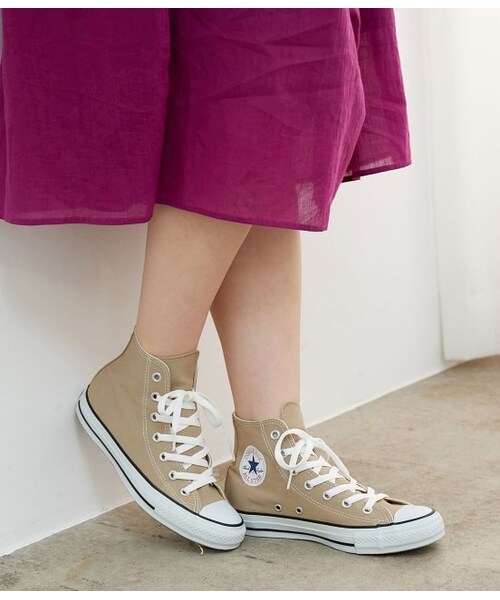 【CONVERSE/コンバース】から、定番人気モデルの「ALL STAR」をチョイス。足首がスリムに引き締まる、ハイカットデザインです。スタンダードな一足は、トレンドにとらわれずどんな着こなしにも馴染むところが魅力。今季はロングスカートに合わせて、こなれ感のある大人のスニーカースタイルをお楽しみください。メーカー品番:32664389210