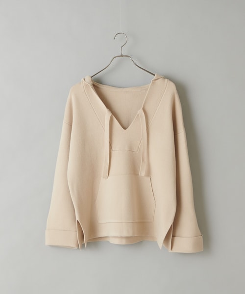 女性でもおしゃれにとりいれやすい念願のニットメキシカンパーカー・ニット素材で柔らかい印象・すっきりした首元のデザインとサイドスリット・ボトムを選びやすいチュニック丈【生地・デザイン】注目のメキシカンパーカーを程よい肉厚感のあるニットでつくりました全体的な仕様のバランス感に気をつけたのと、ニットにすることでカジュアルさが抜け、女性にも着ていただきやすいアイテムです。肉厚ながらも柔らかい質感と、ゆったりとしたシルエットが、リゾートライクな雰囲気を演出します。【コーディネート】チュニック丈にすることで、合わせるボトムスの幅も広がりスタイリングの幅が広がります。春はギャザースカートなどボリュームのあるスカート合わせがオススメです。カジュアルにスニーカーでも良いですし、スカートにショートブーツスタイルも◎【スタッフレビュー】年齢:30代前半 身長:163㎝サイズ感:程よくゆるっと着れて、重くなり過ぎないデザイン。首元の開きはロンTとのレイヤードも楽しい◎ 着心地:ちくちくしないニットで着心地が良いです。