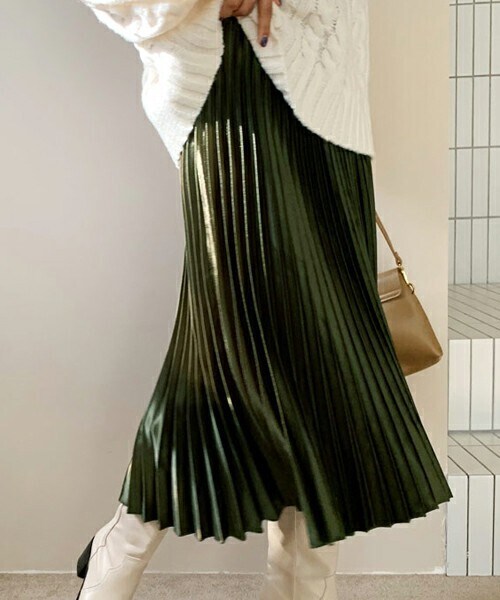 グロッシー生地にプリーツ処理のスカート。 ウエスト周りがゴムで揺れ感のあるフレアライン。 ※WEARに記載してある金額と、DHOLIC通販サイトに記載してある金額にシステム都合上、稀に誤差が生じます。正しい金額はDHOLIC通販サイトに記載された金額です。